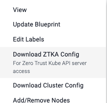 - Select "Download ZTKA Kubeconfig"
