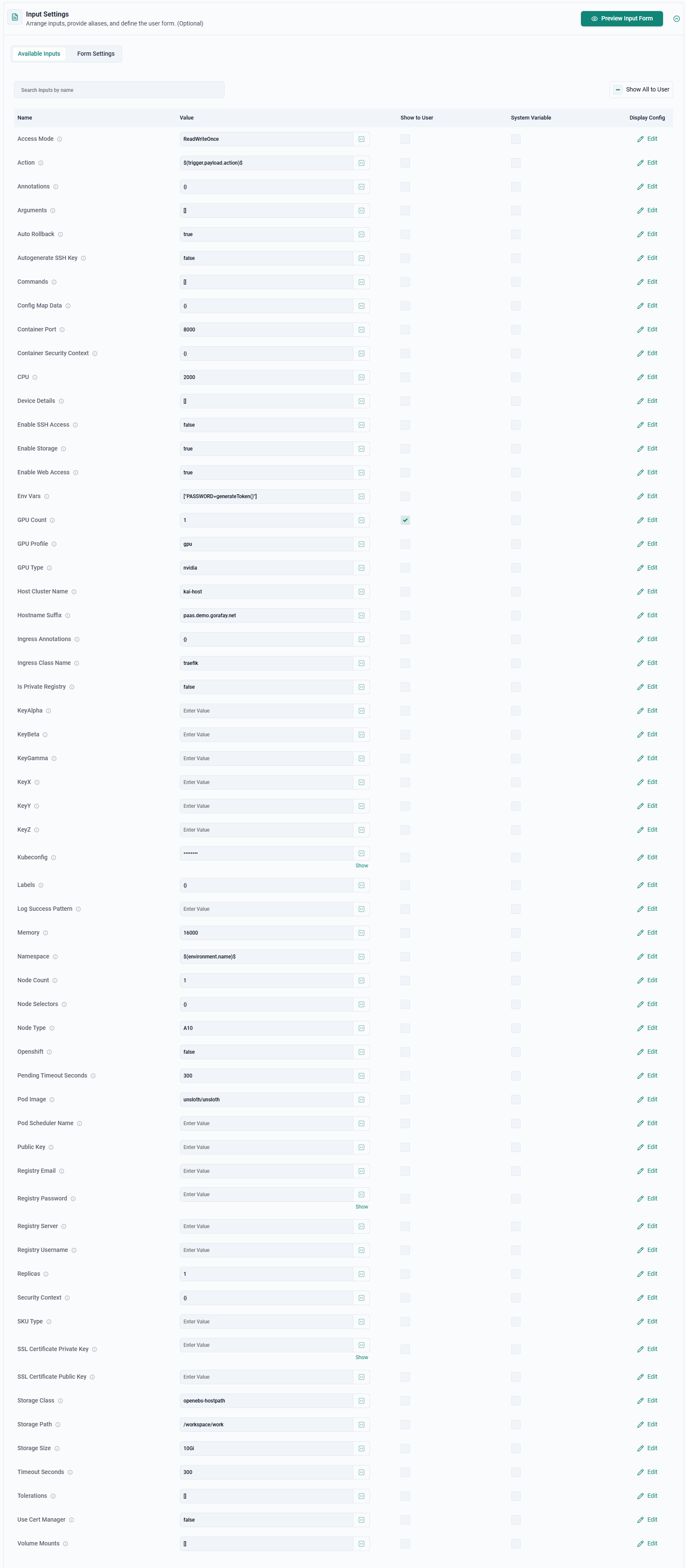 - Default values for required inputs