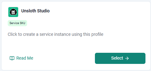 - Click Select on the Unsloth Studio Card