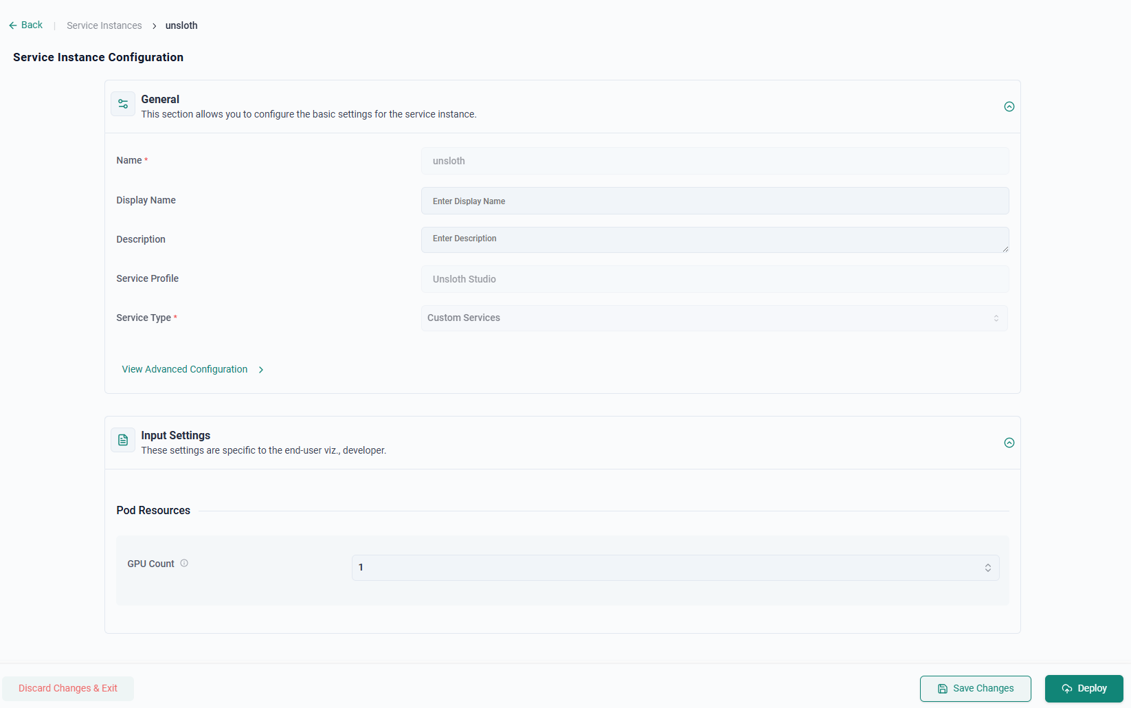 - Provide a unique name (e.g. unsloth)