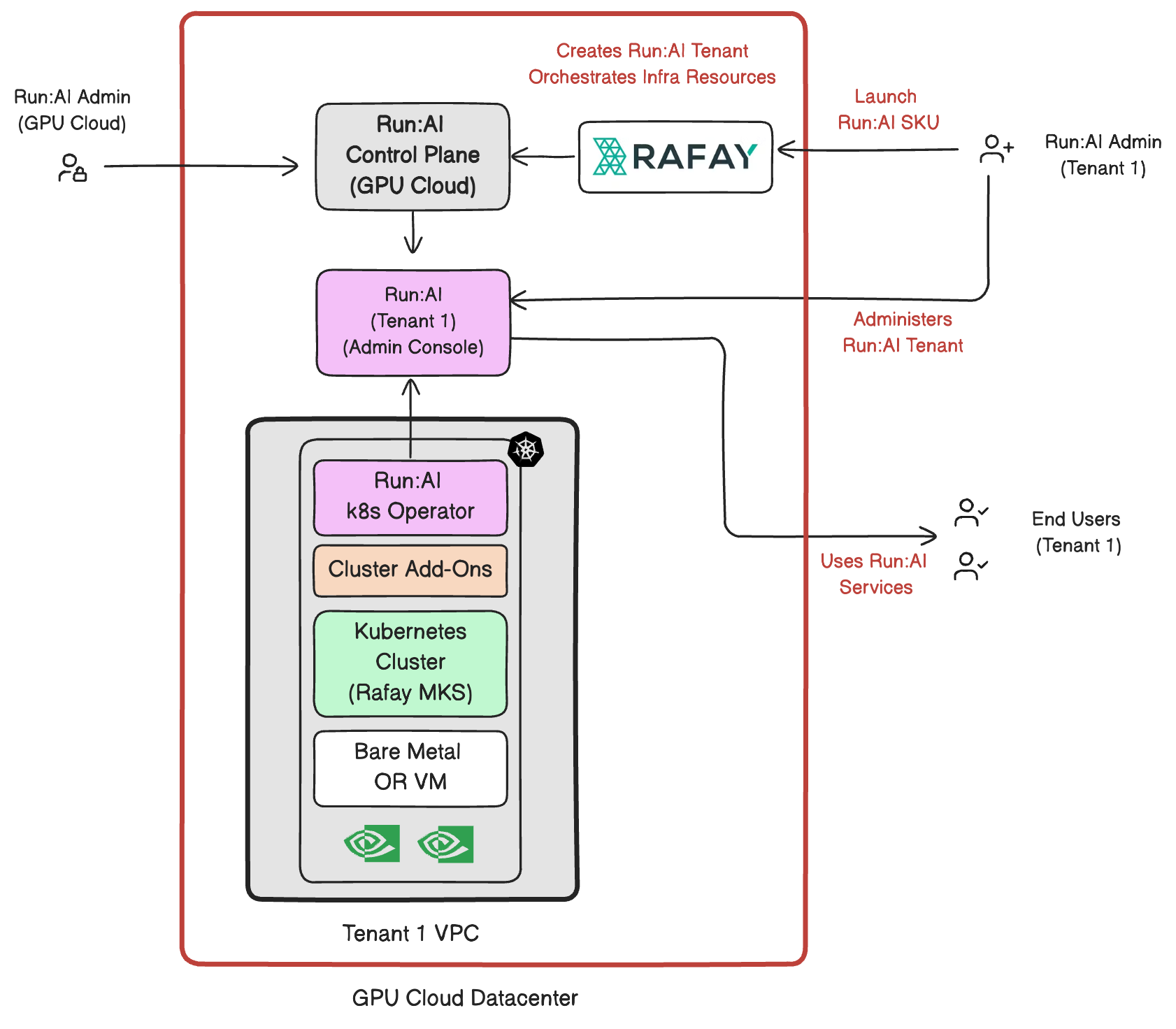 In a nutshell, users are provided with a dedicated Run:AI instance without having to touch infrastructure.