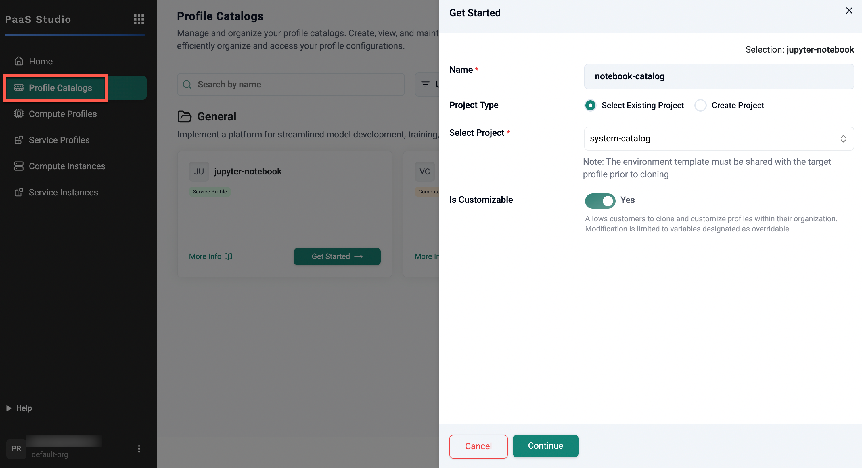 1. Navigate to PaaS Studio → Profile Catalogs from the left-hand menu.