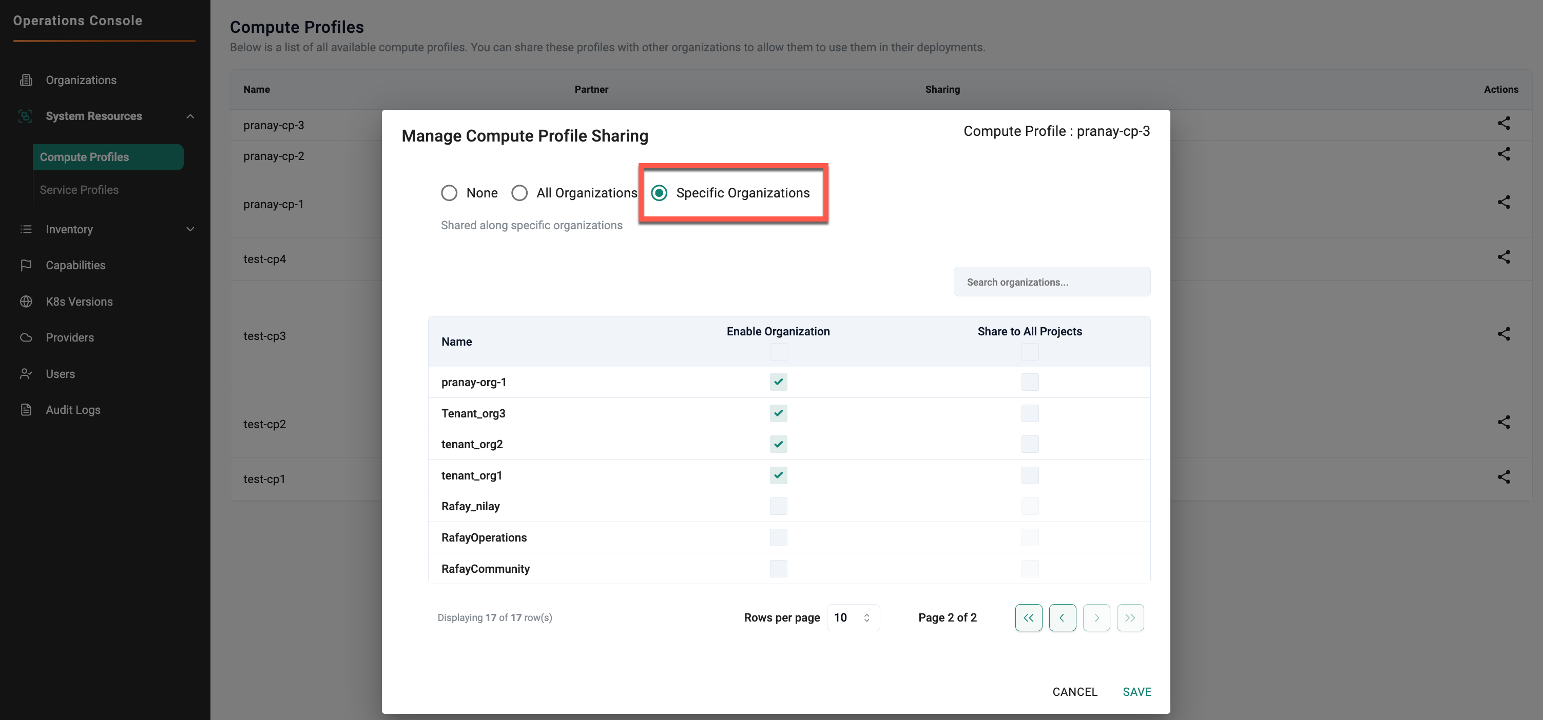 Select Specific Organizations to share the profile only with selected tenant organizations.