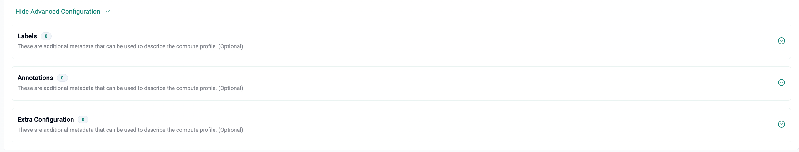 | Labels | N/A | key-value | Optional metadata to help categorize and identify the compute profile |