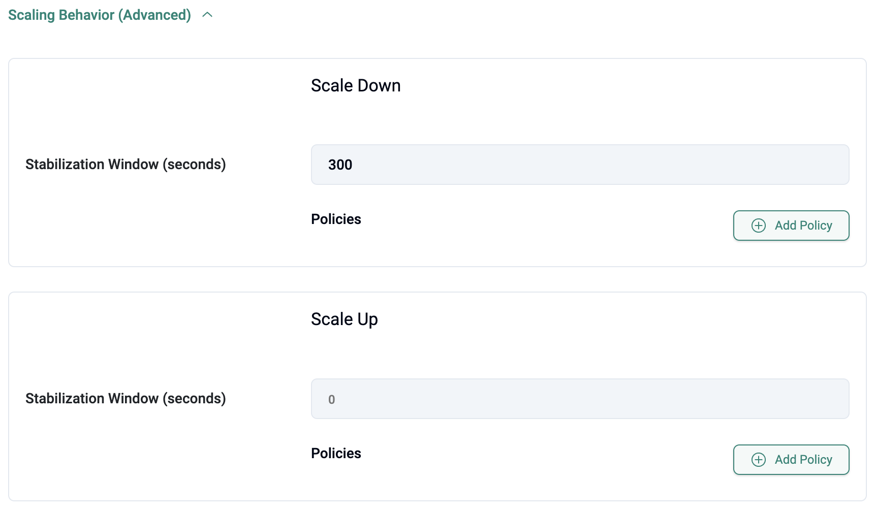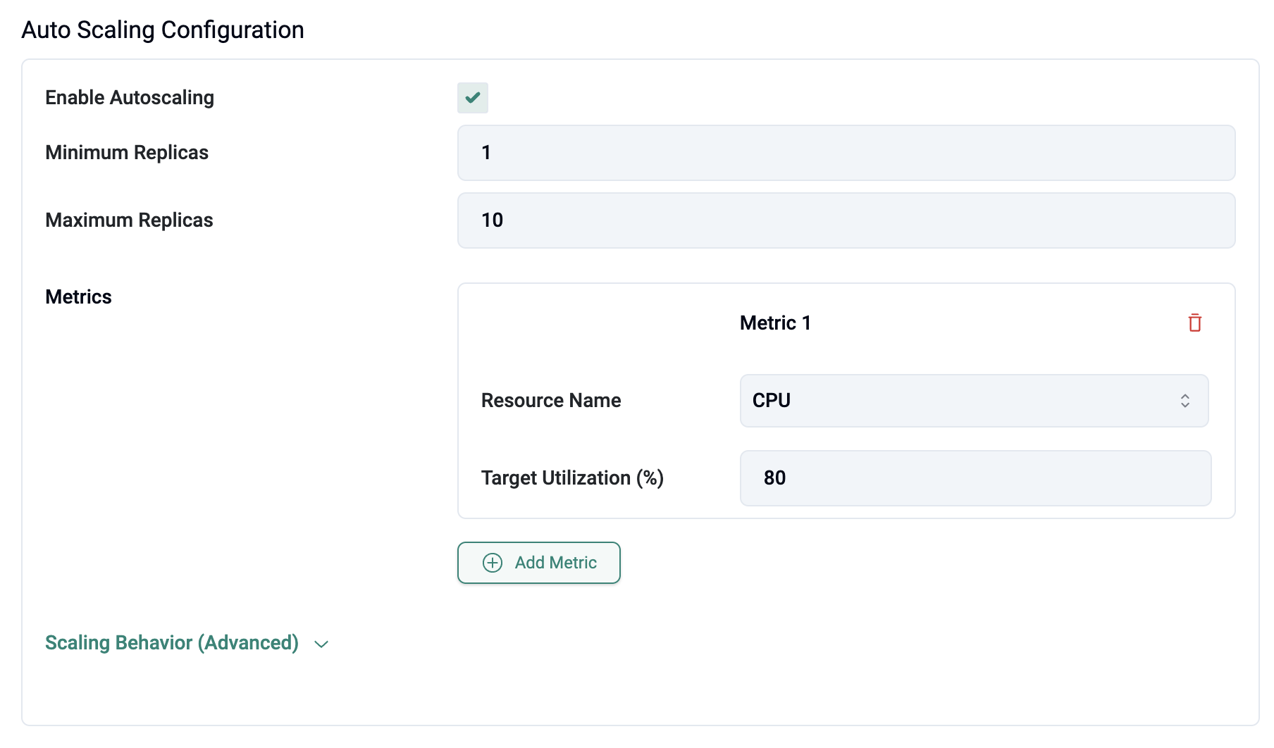 Admins are also provided with access to advanced configurations for auto scaling behavior.