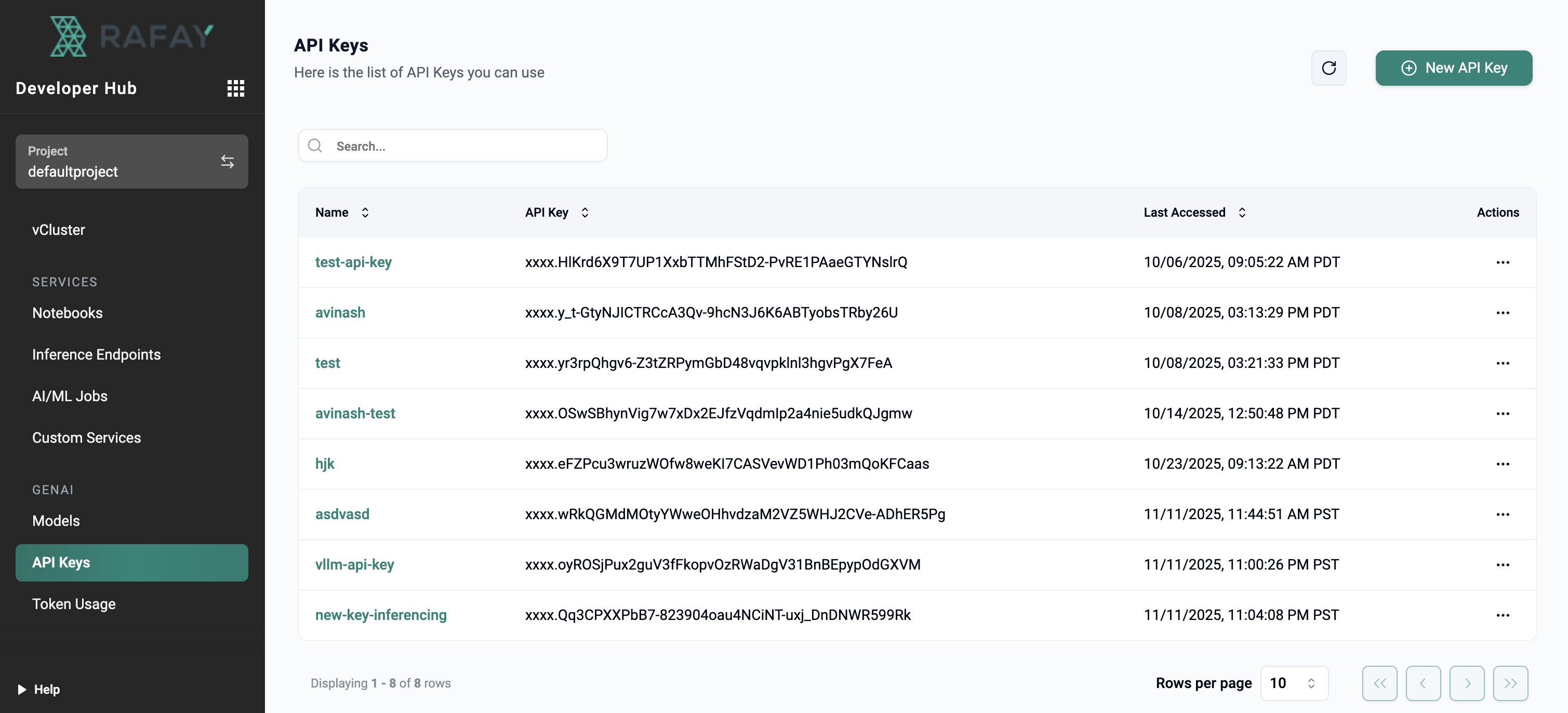 Rafay's Serverless Inference offering implements OpenAI's Completions API, Chat API etc. This allows applications to programmatically interact with the Inference endpoint using an HTTP client.