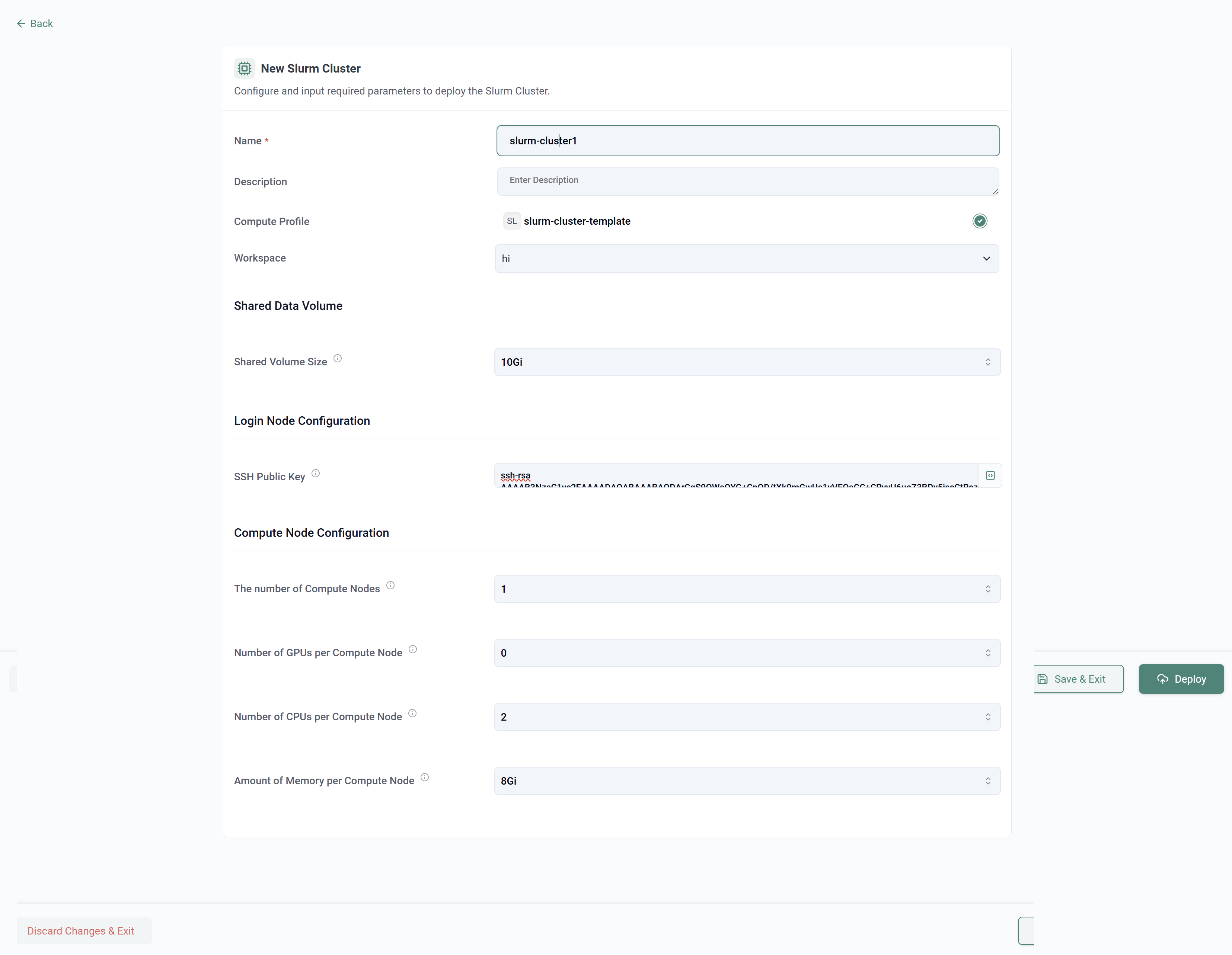 SLURM Cluster administrators are provided with a one-click deployment of a SLURM Cluster which gets deployed onto a host Kubernetes cluster.
