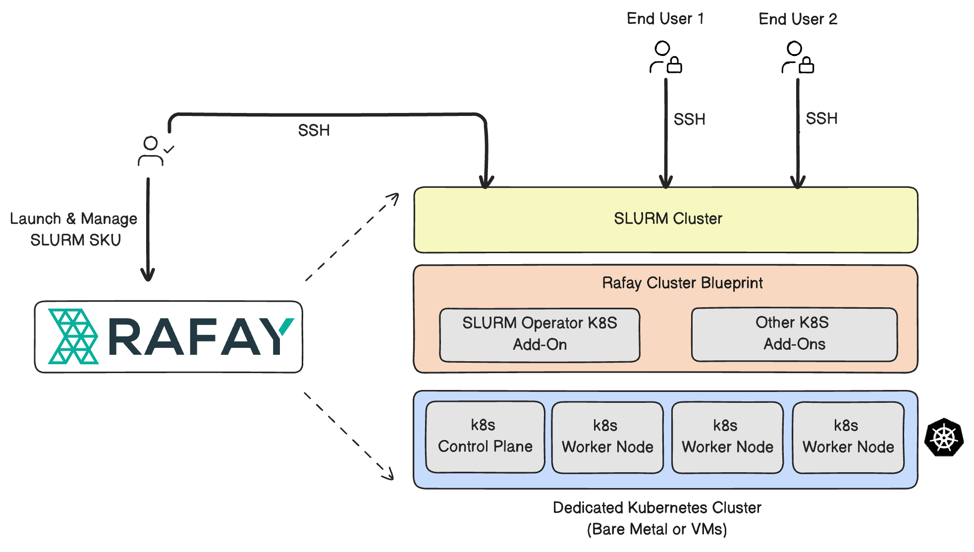 - Resource Pooling: Nodes, GPUs, and storage can be dynamically allocated among SLURM clusters.