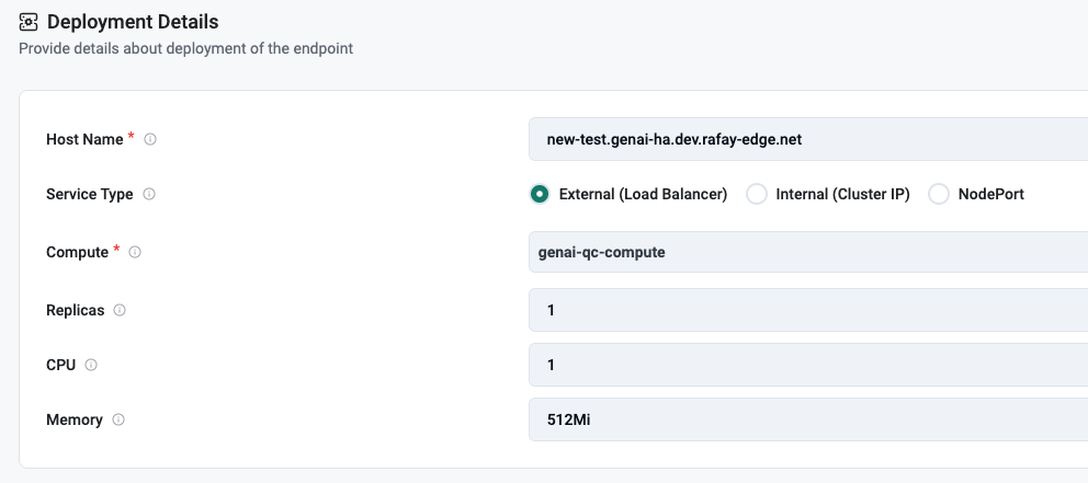 - Specify how the endpoint service will be exposed to users (External->Load Balancer, Internal->ClusterIP, k8s NodePort)