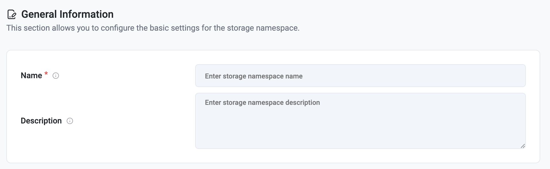 4. Name — A unique name for the storage namespace