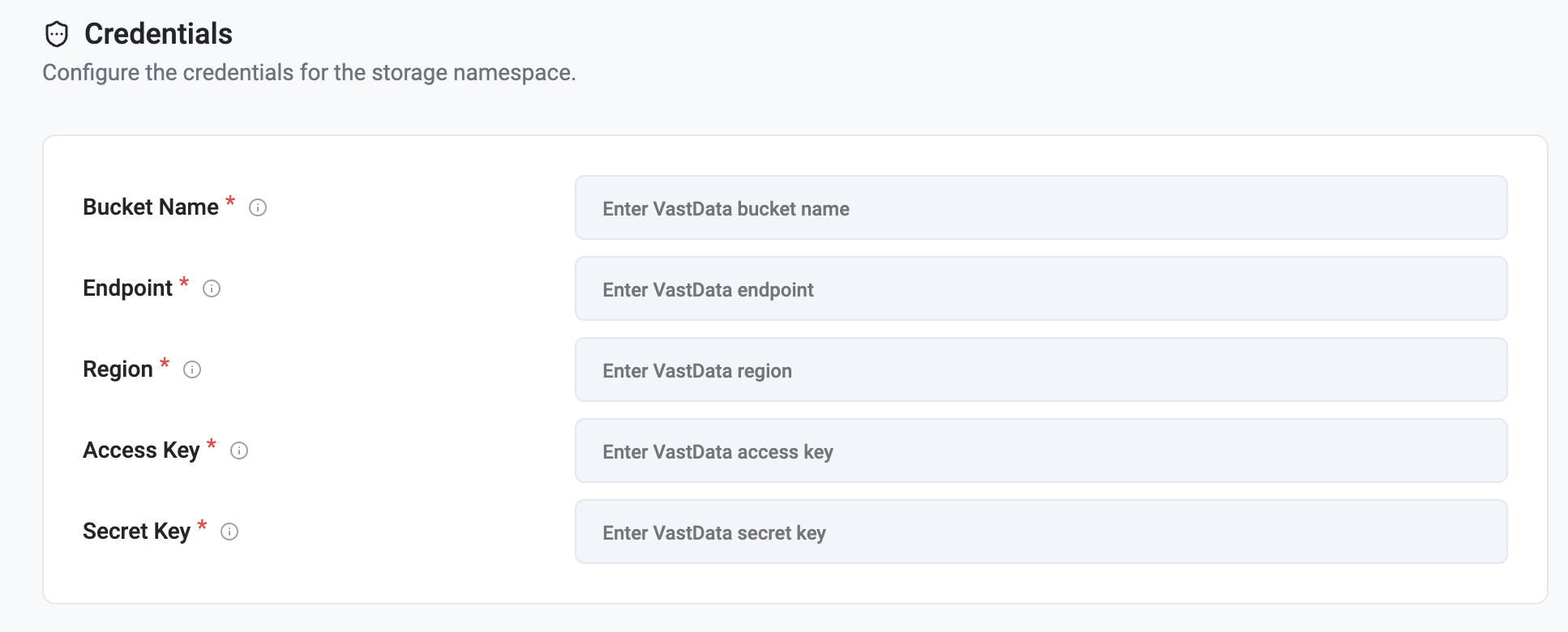 1. Enter the required storage credentials for the selected backend.
