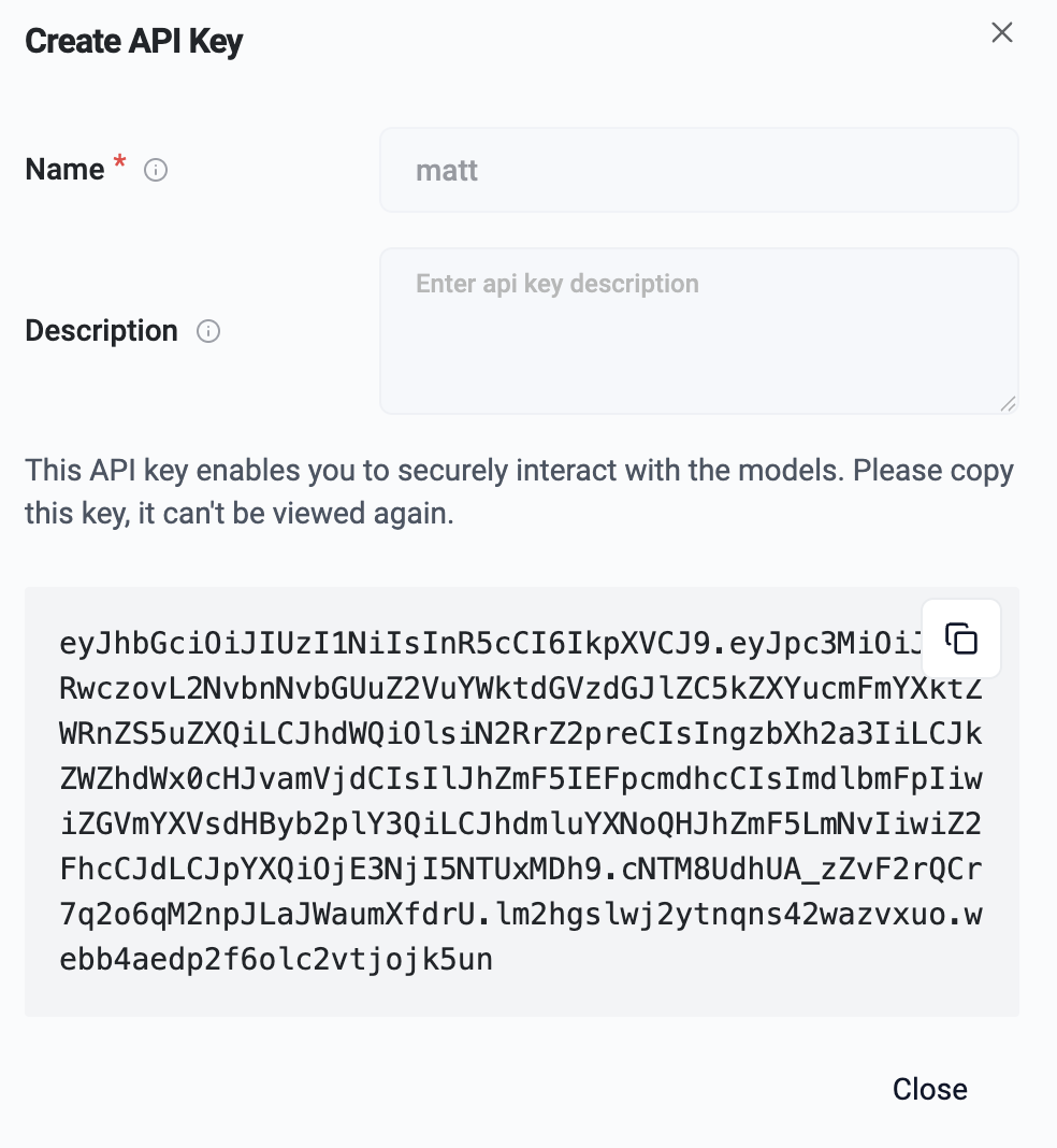 Once the user clicks on "Create", the API Key is displayed to the user.