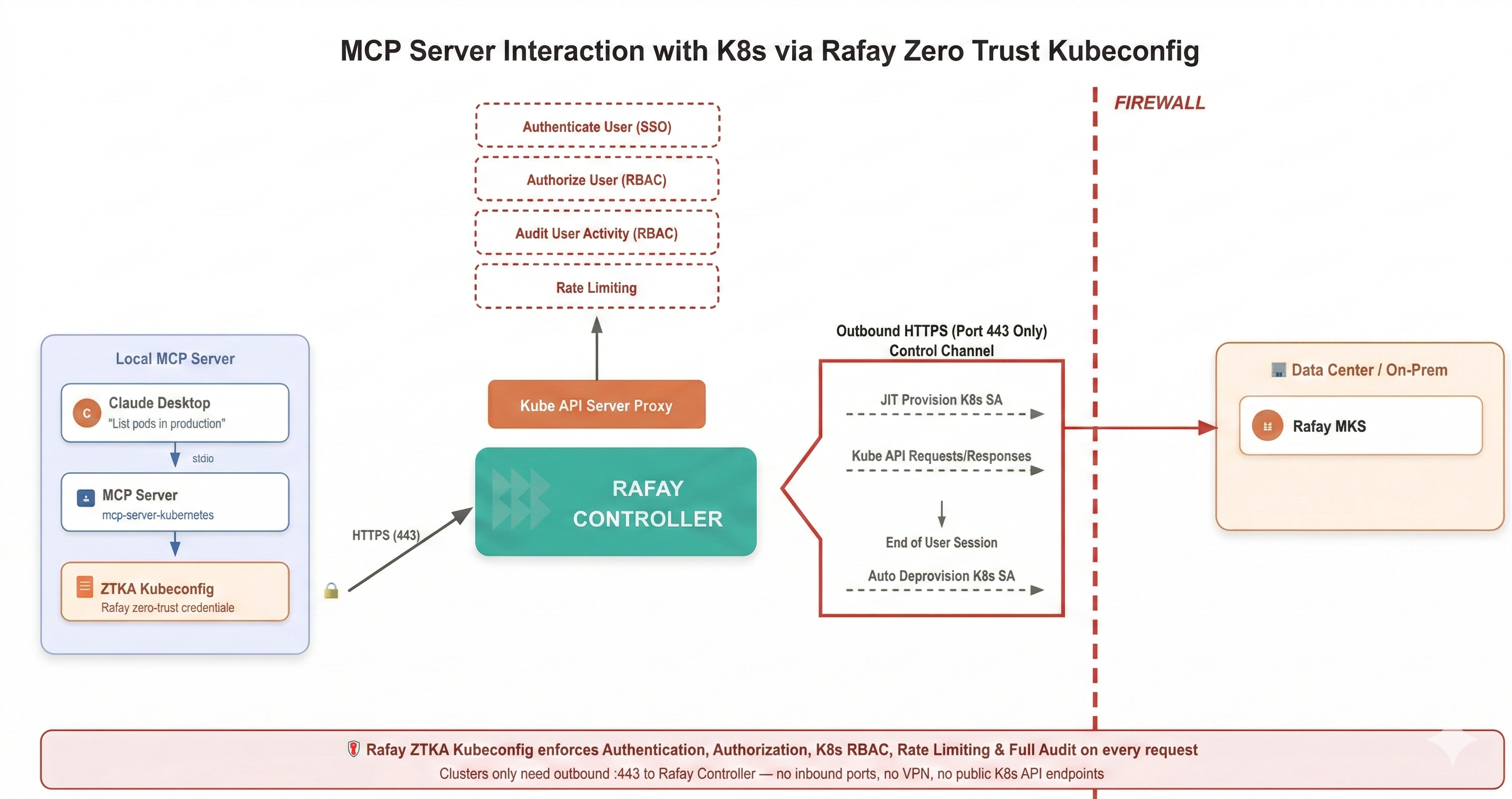 By combining MCP with Rafay ZTKA, organizations can enable AI-driven Kubernetes interactions without compromising security, visibility, or compliance.
