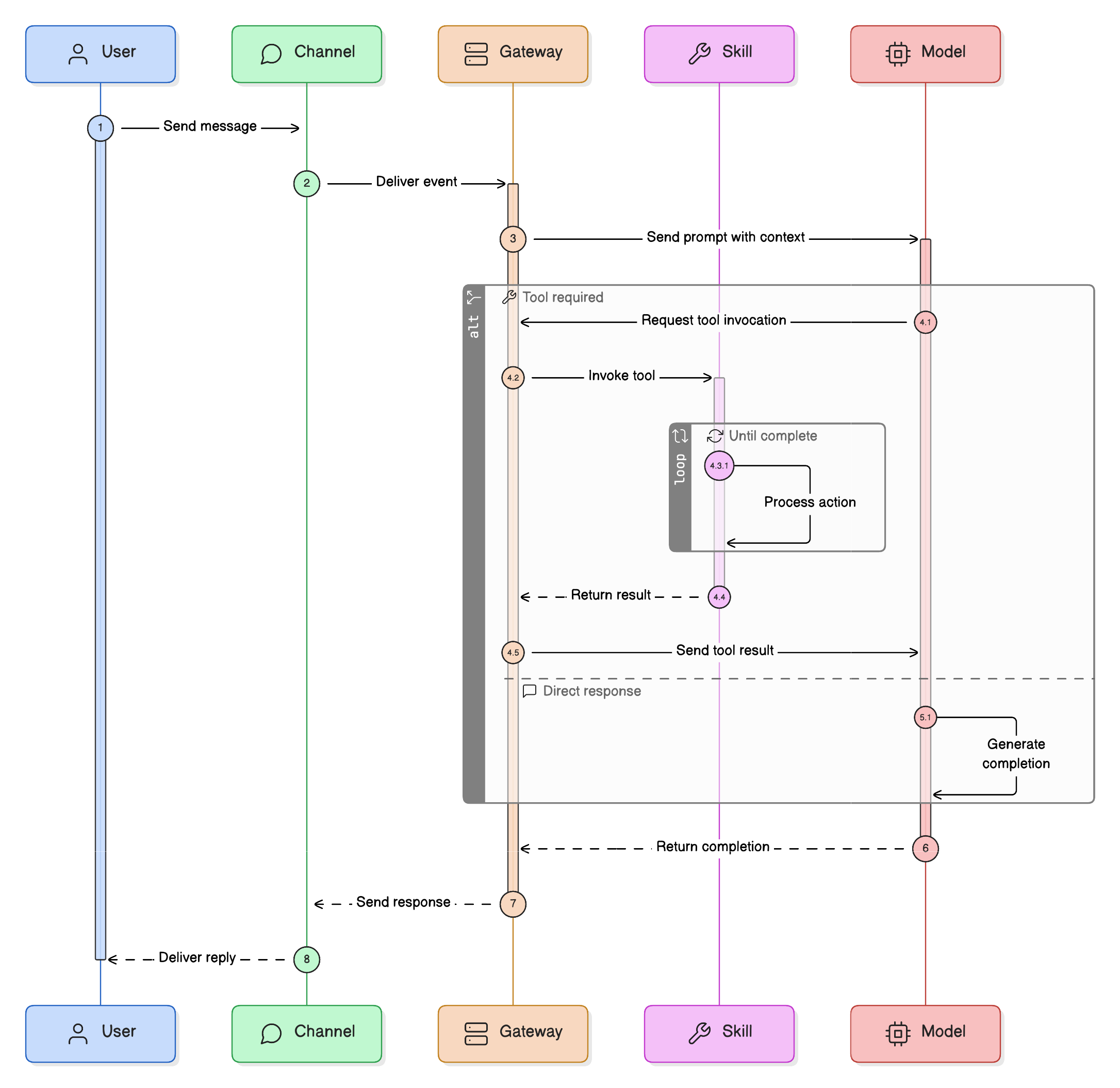 The image below shows a typical request flow through the OpenClaw platform. This flow is why OpenClaw is relevant to platform engineering. It is not just “an app that calls a model.” It is a mediated control path for AI interactions.