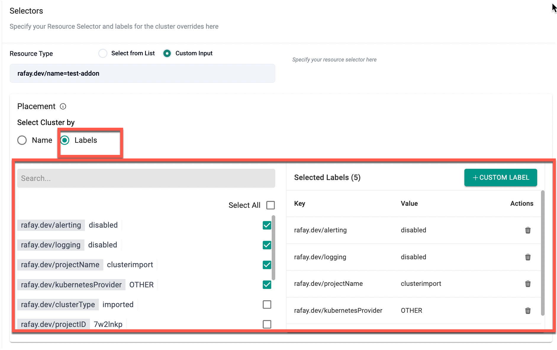 - Chosen labels will be displayed under Selected Labels with Key/Value details