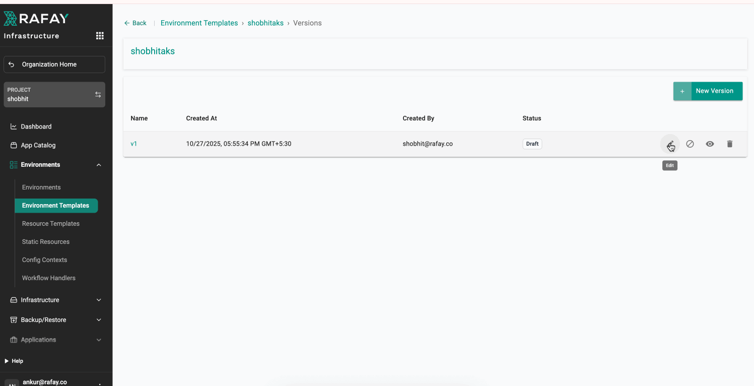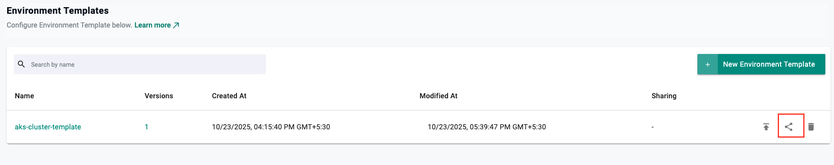 Once configuration is complete, save it as an active version and share the template with end-user projects: 1. Navigate to the template sharing settings 2. Select target end-user projects 3. Publish the template for consumption