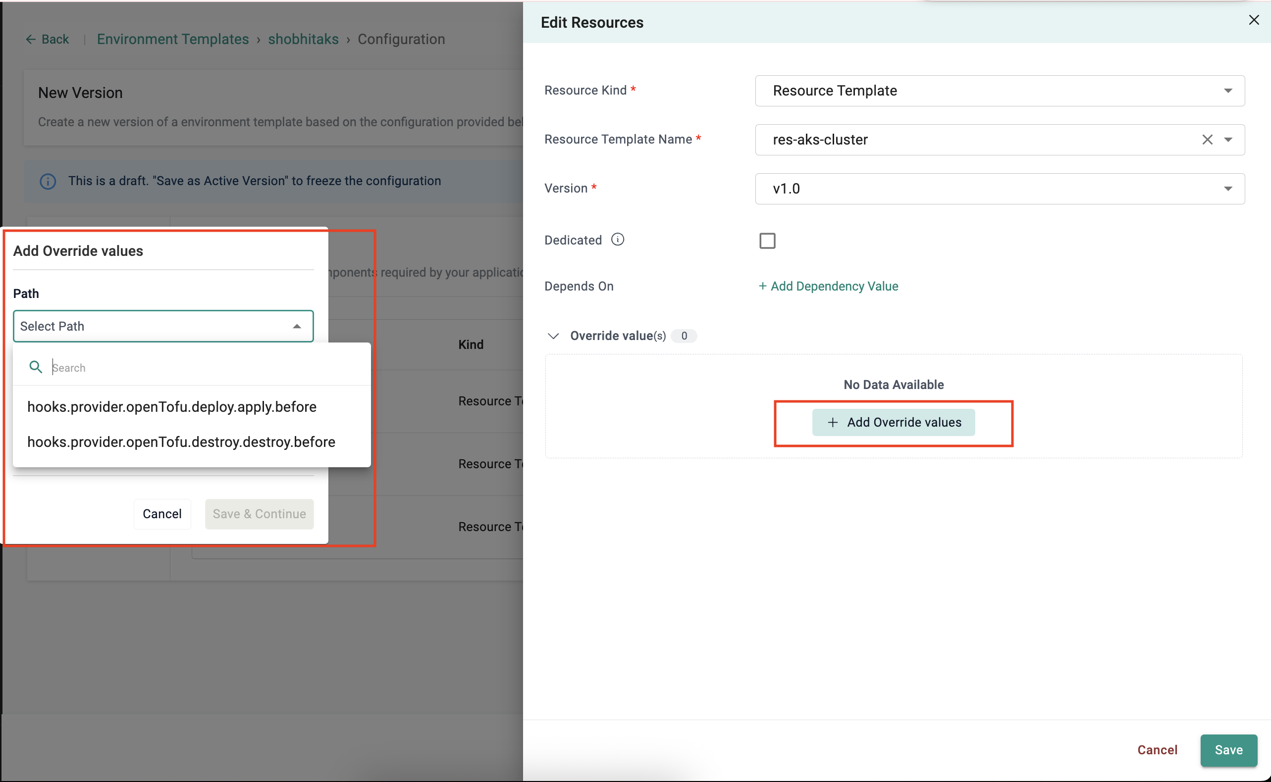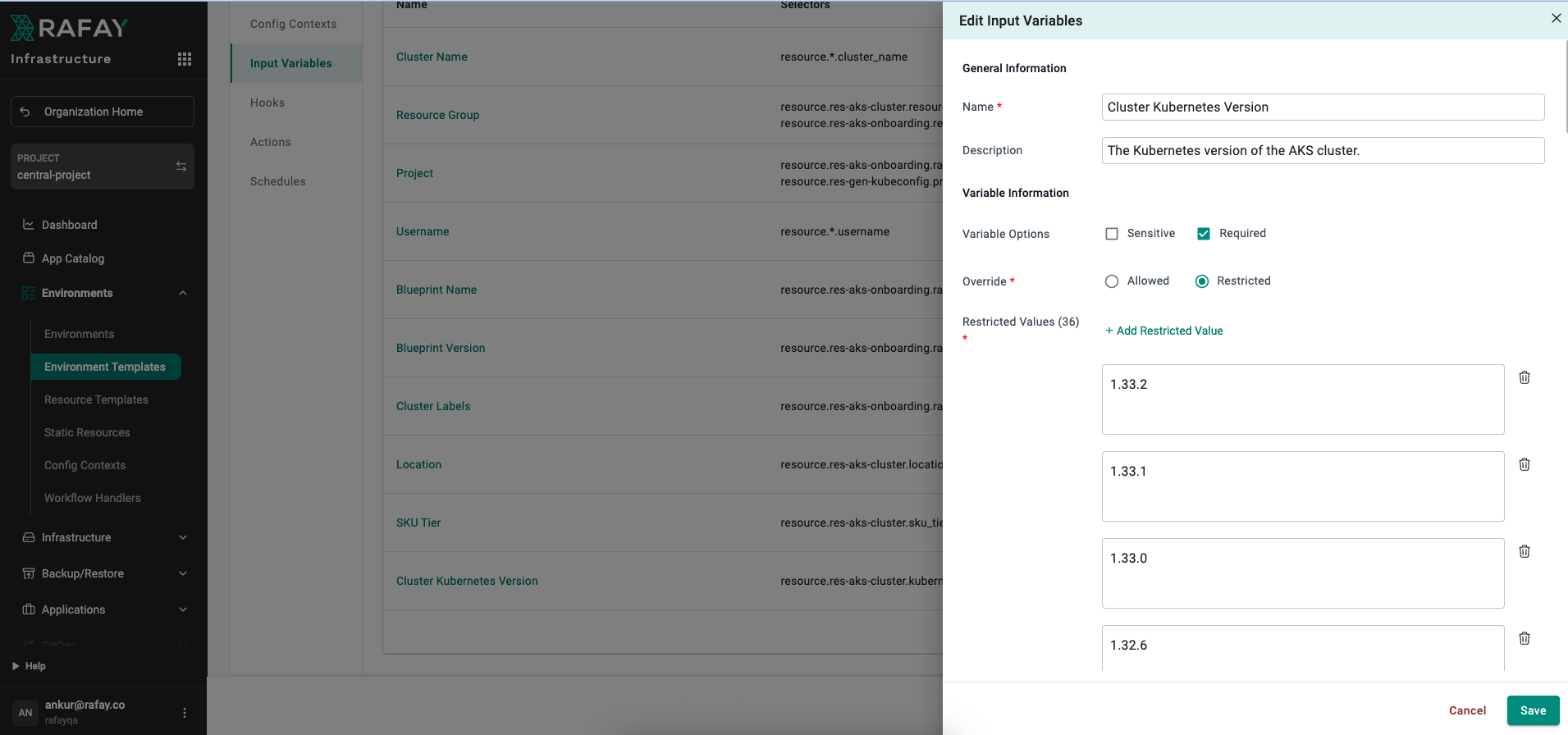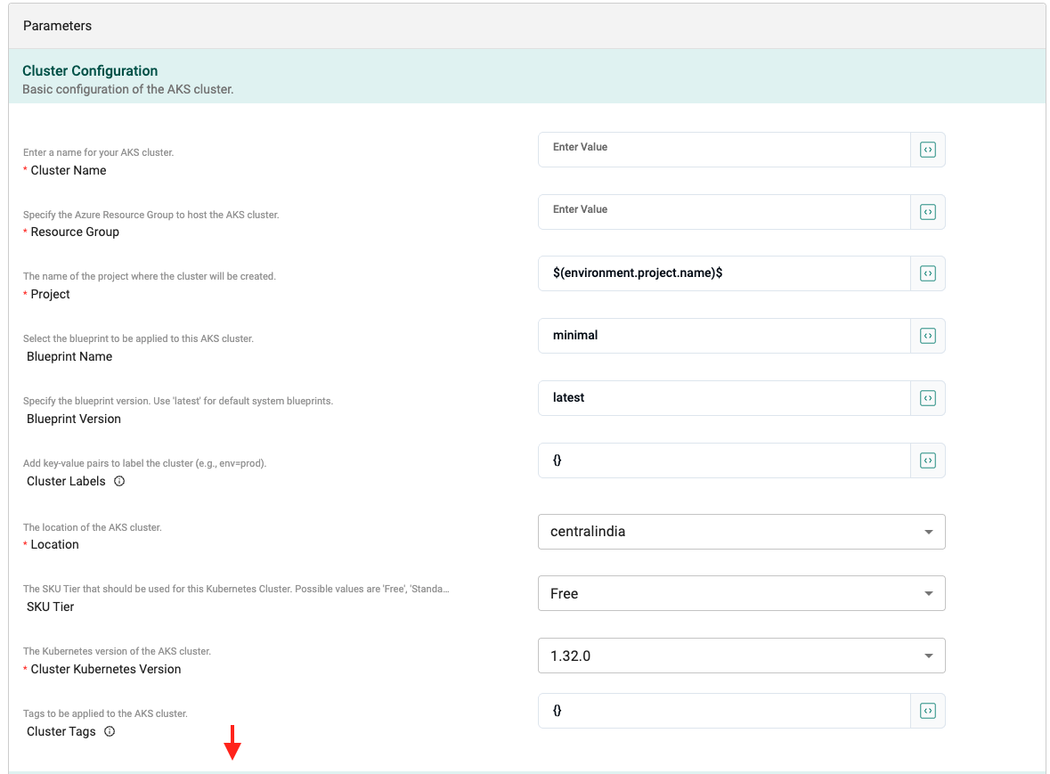 Once the platform administrator shares the Azure AKS template to end-user projects, end users can easily deploy AKS clusters with minimal configuration effort.