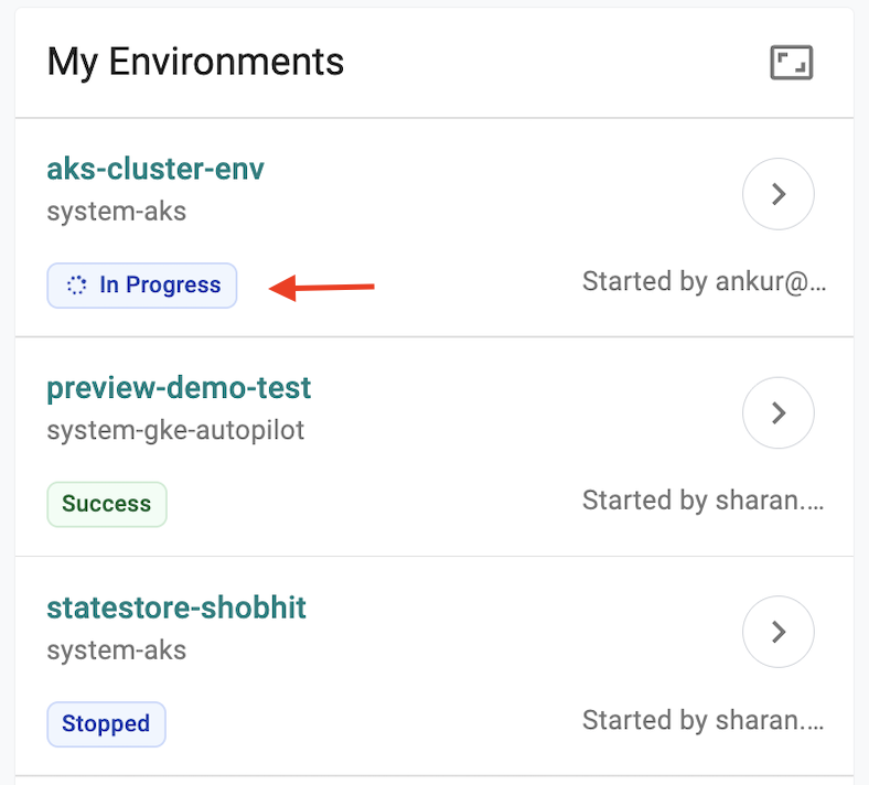 Track the deployment progress through the status indicators. The screenshot below shows how to monitor your deployment status.