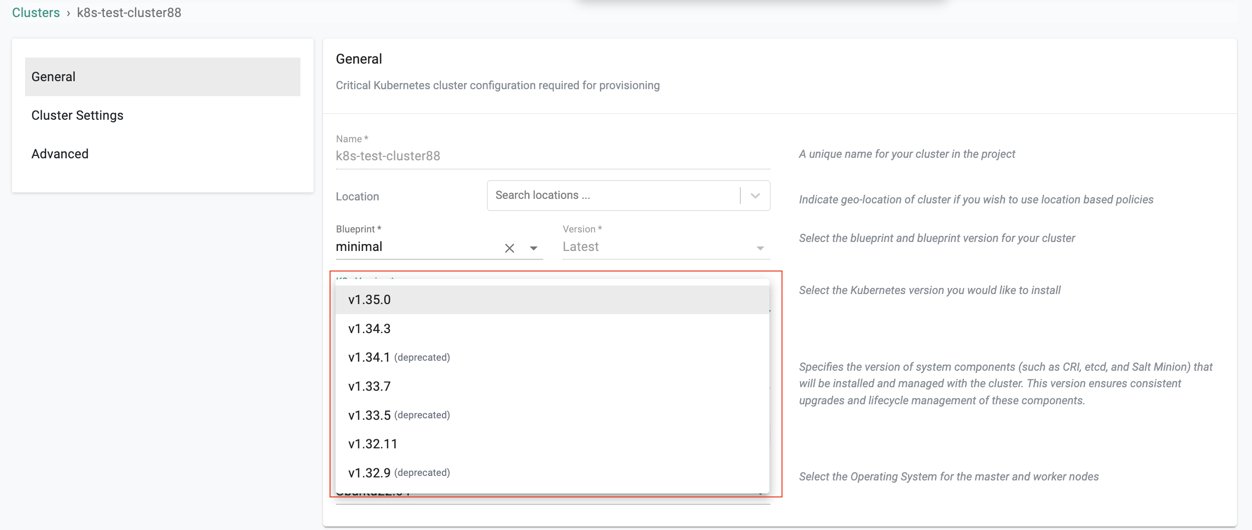 - Select cluster blueprint and version. Users can select the default-upstream blueprint based on the requirement. To use the default-upstream blueprint, a storage node is mandatory