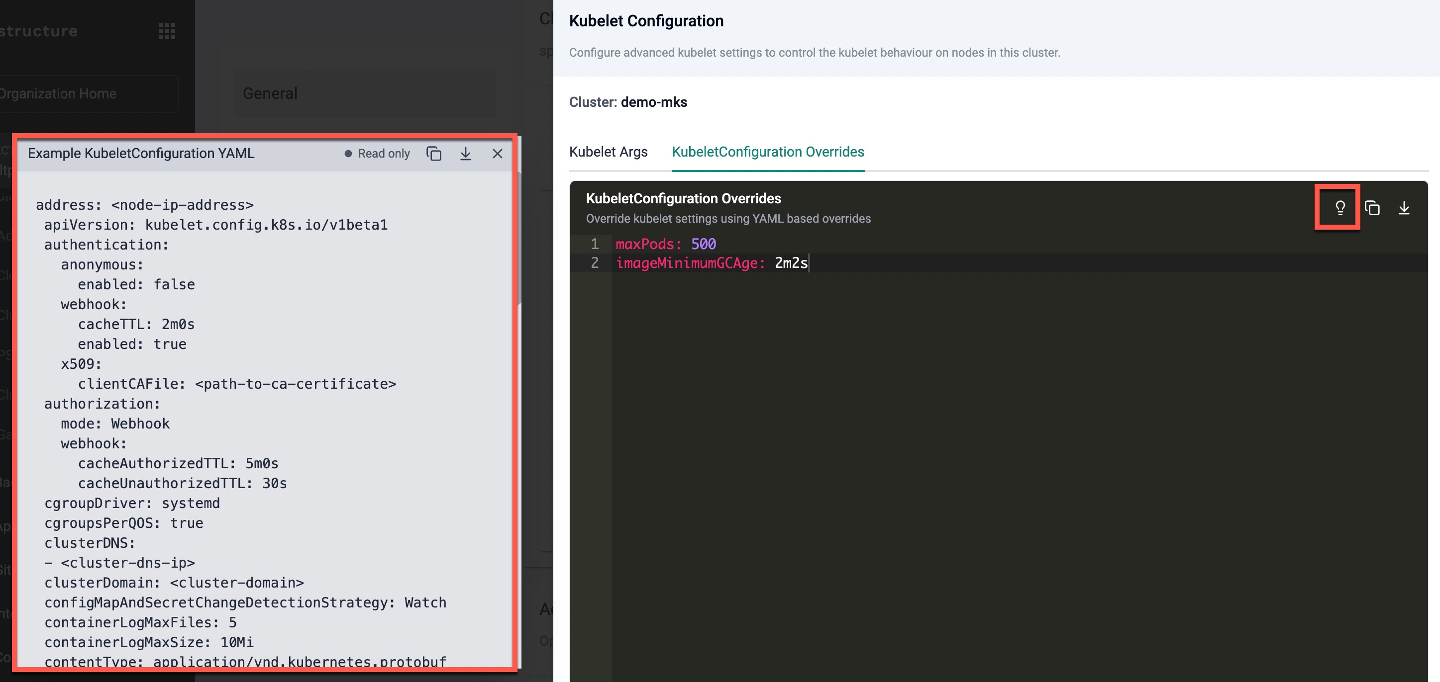 Download the cluster configuration formatted for GitOps System Sync, either from the console, using the RCTL CLI, or programmatically through the REST APIs.