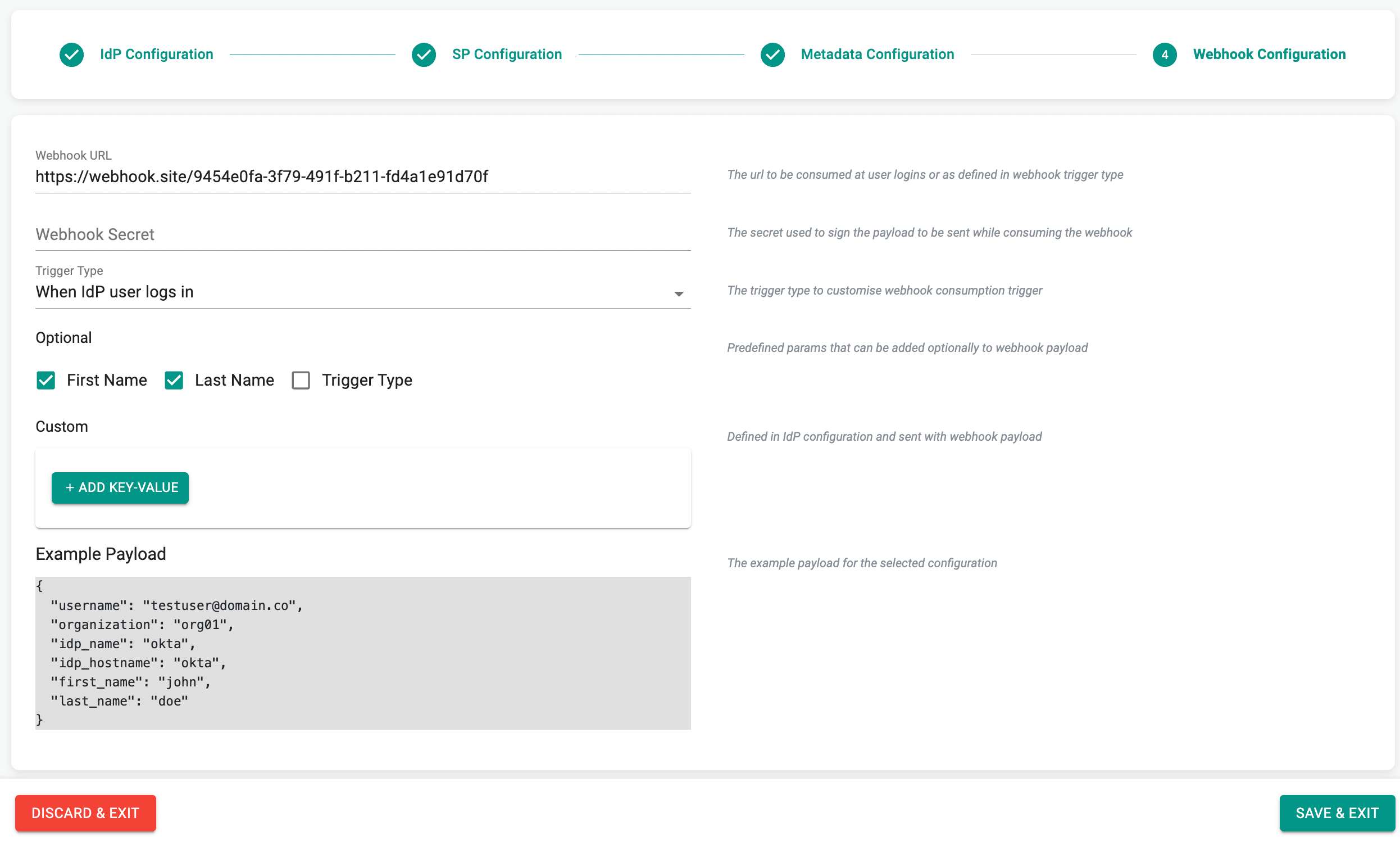- Paste the Identity Provider Metadata URL from KeyCloak and click Save & Exit to complete the IdP Registration