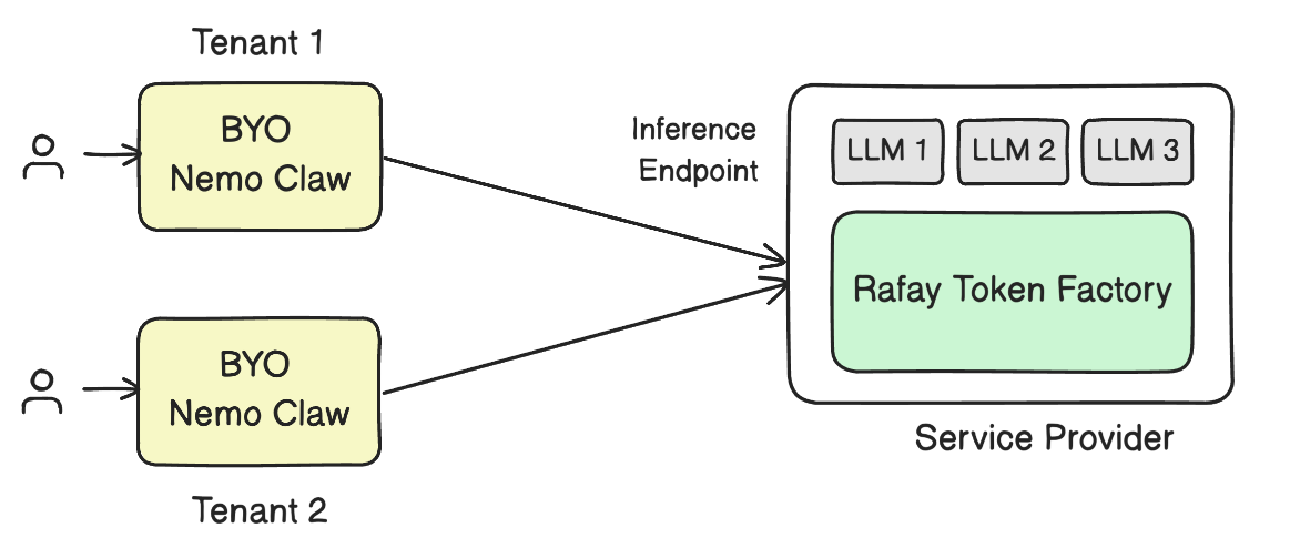 In this guide you will use an inference endpoint from Rafay's Token Factory as a custom model provider within a self hosted, BYO NemoClaw instance.