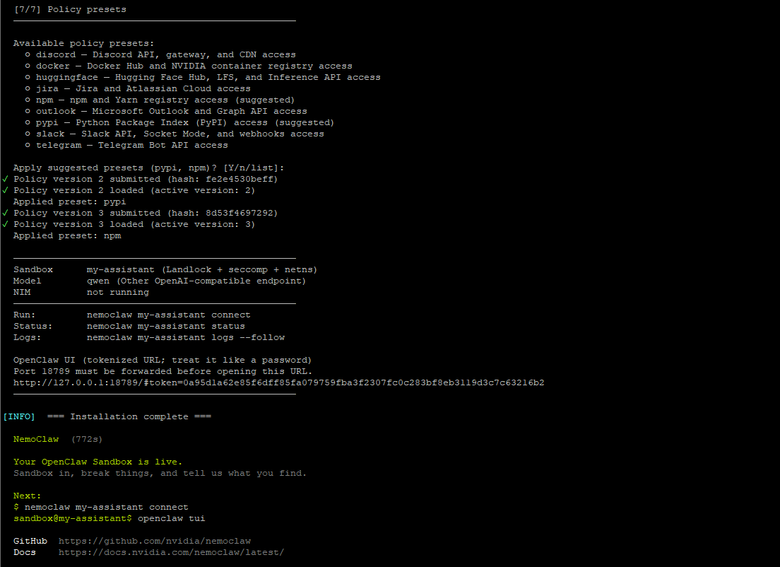 In this section, you will install NemoClaw and configure a sandbox that will use your Token Factory model.