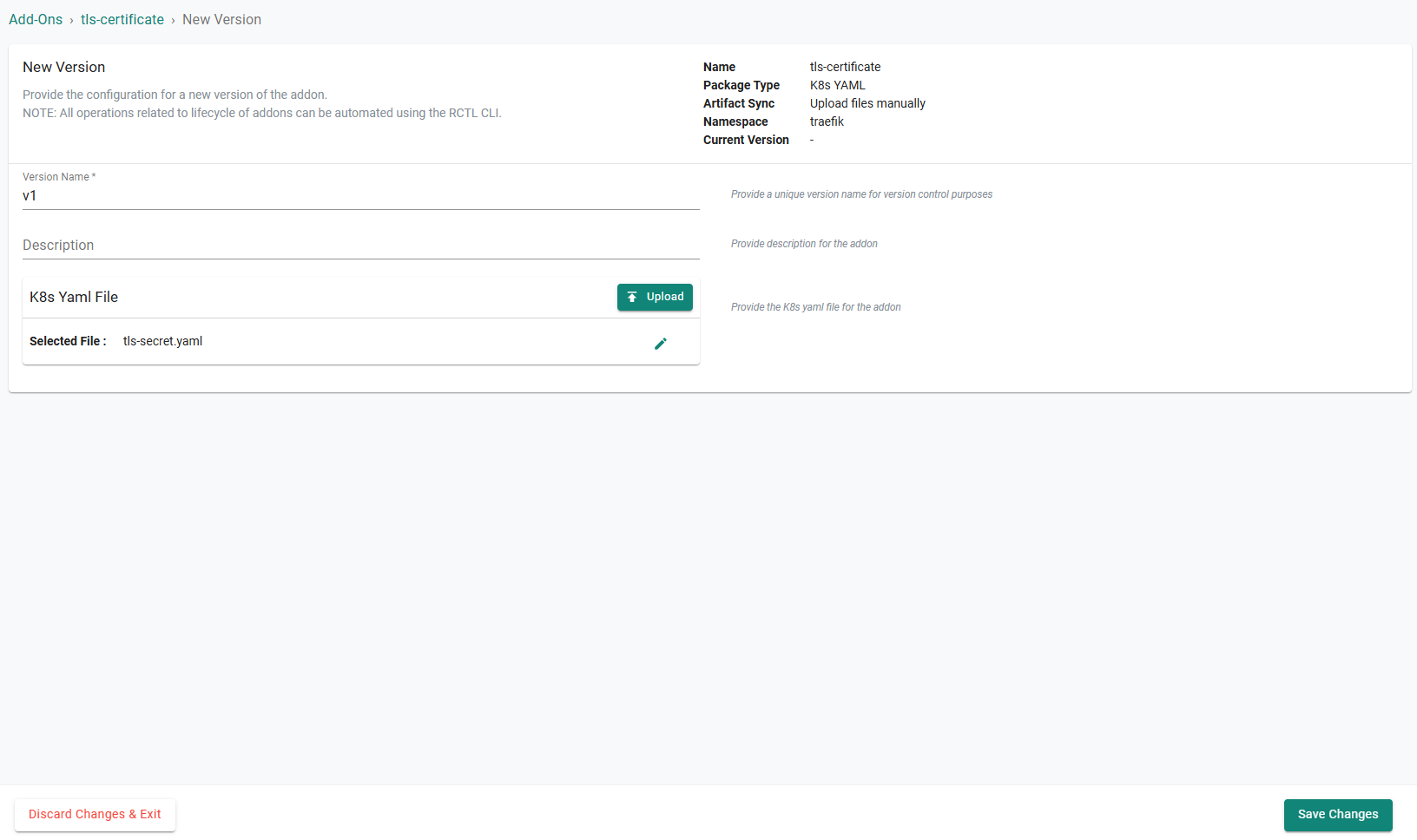In this step, you will create addon for a secret containing the TLS certificate for the wildcard domain to be used by ingress.