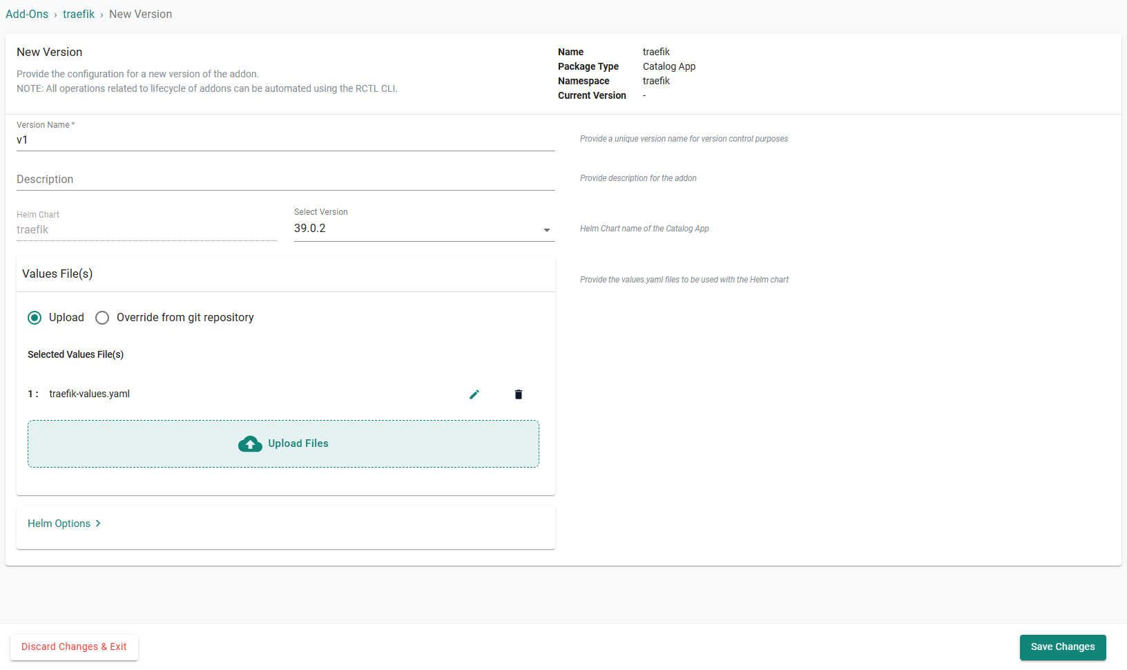 In this step, you will create a custom values file for the Traefik Helm chart. The values file will reference the addon secret from the previous step.