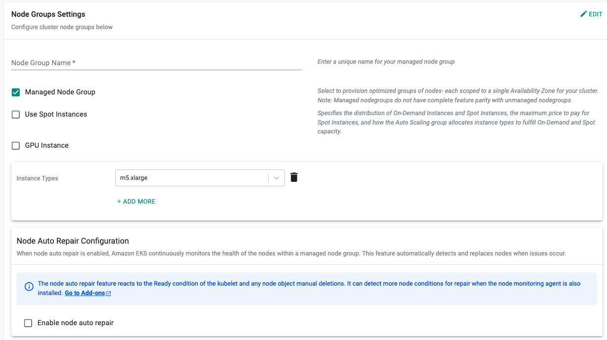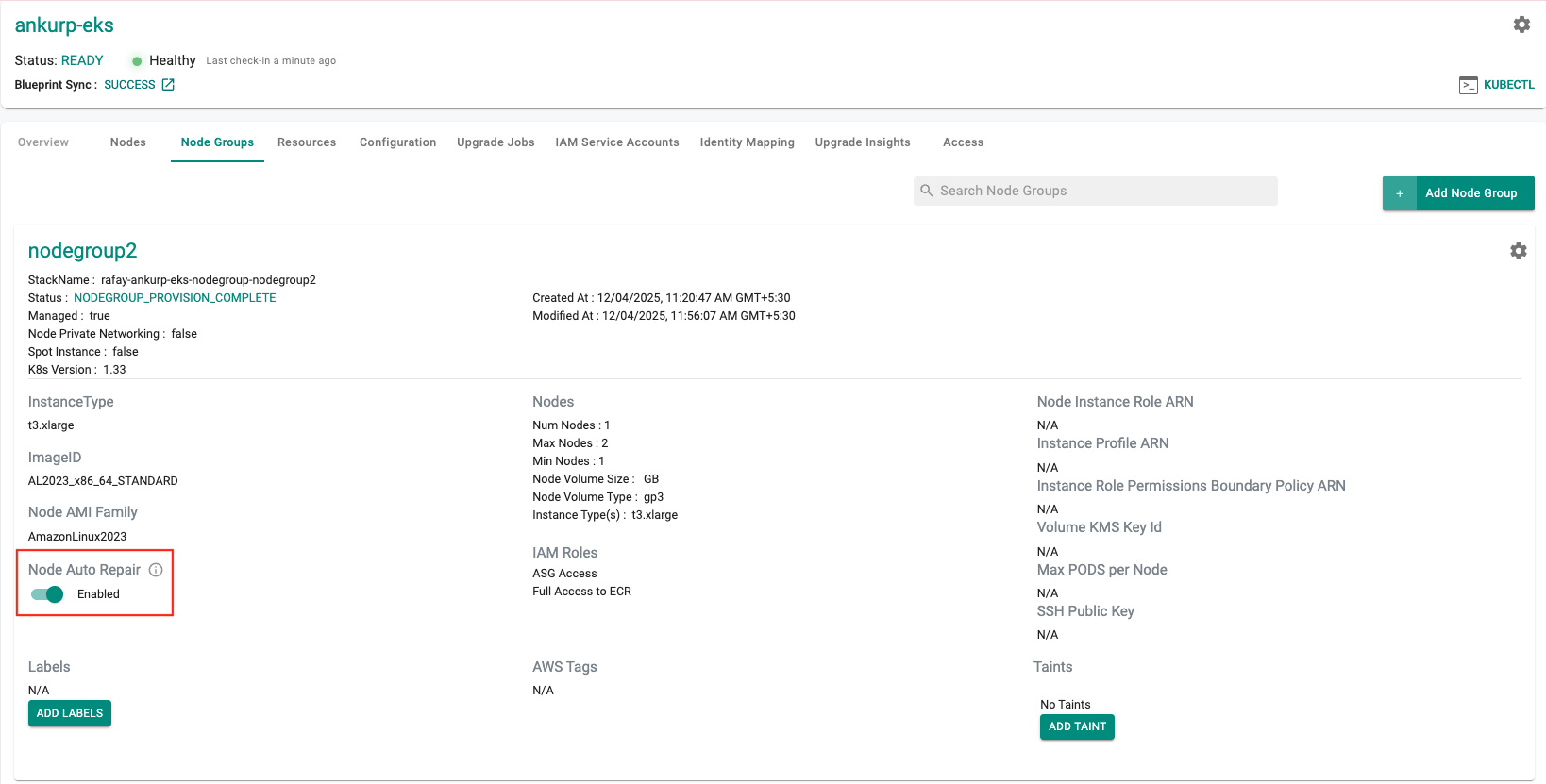 - rafay_eks_cluster: Added node repair configuration support for EKS clusters. See the eks_cluster resource documentation for configuration details.