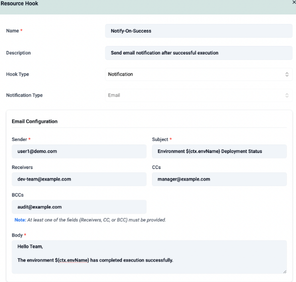 A new notification hook framework has been added to resource and environment templates.